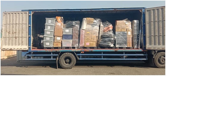 寄倉貨品陸續裝櫃待運送至台北港。