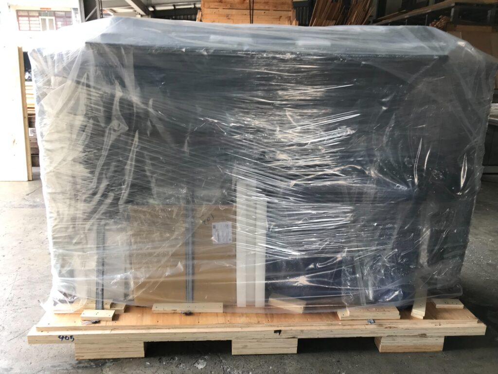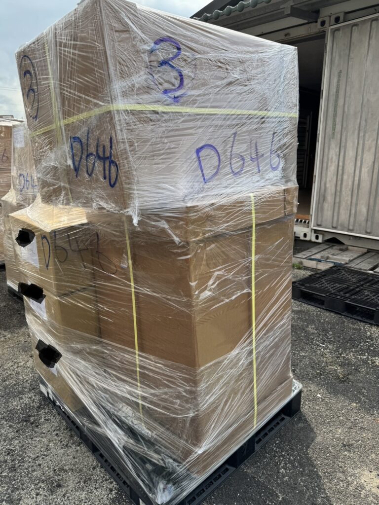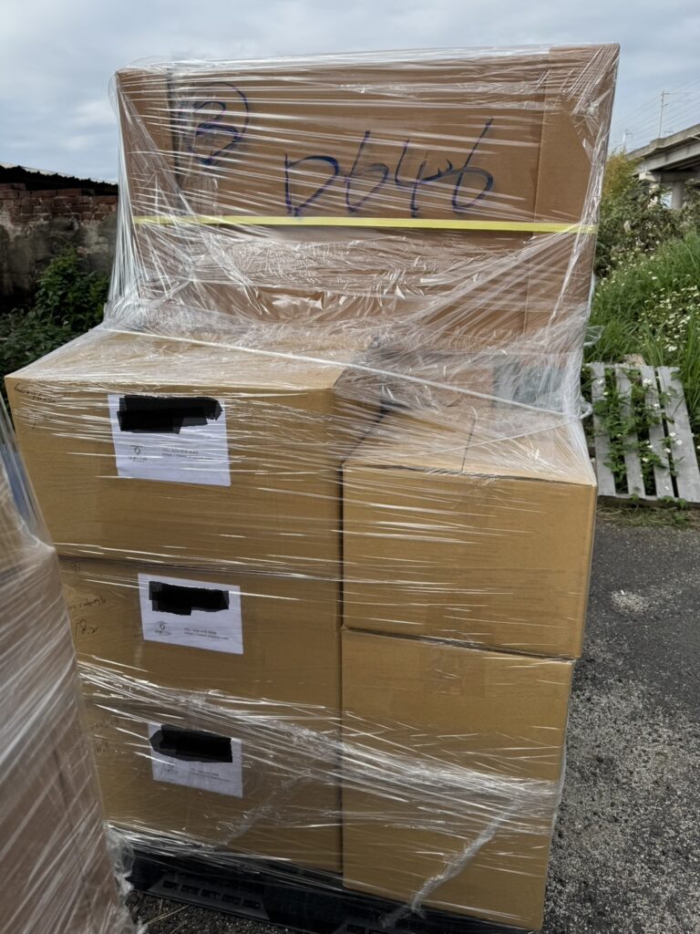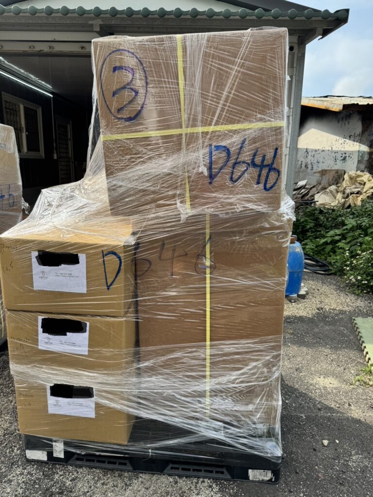 結構支架:將所有箱體組合於標準出口棧上方,並採用高強度工業伸縮膜進行拐點,確保在貨櫃收納中物品不傾倒